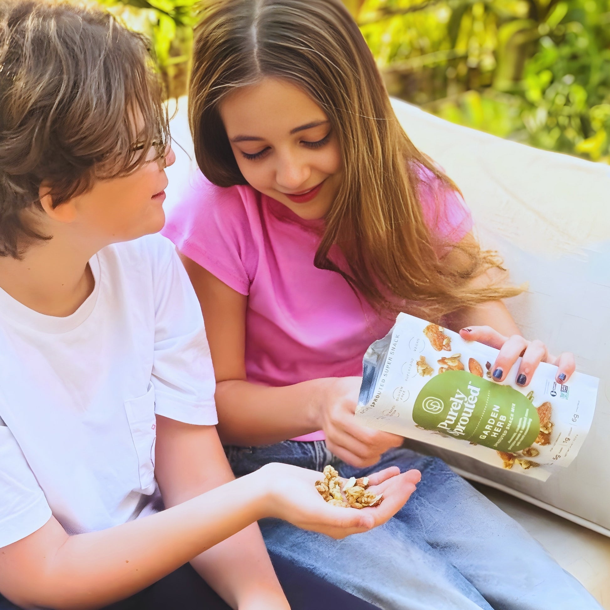 Earthy rosemary. Bright thyme. A whisper of garlic. This mix brings that classic herb garden flavor to a crunchy, savory blend of sprouted seeds and nuts. It’s deeply flavorful—like your favorite roasted veggies but in snackable form.