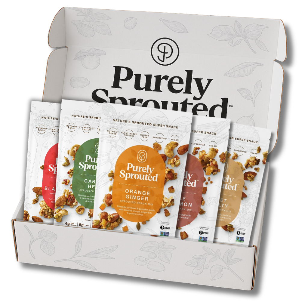 Crafted with sprouted nuts and seeds, every mix is non-GMO and packed with plant-based protein, fiber, and real flavor. Whether you’re treating yourself or surprising someone special, this box is the perfect way to enjoy our full lineup of Purely Sprouted goodness.
